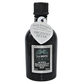 Der Aceto Balsamico Argento Silver besticht durch seine dunkelbraune Farbe und seiner dickflüssigen Konsistenz. Das volle, leicht süßliche Bouquet nach gekochtem Traubenmost mit einer leichten Holznote (10 Jahre Barrique-Reife), machen ihn zu einem edlen Produkt, das jede Speise verfeinert.