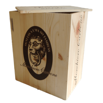 Hier steht eine Holzkisten Salende (Messapio) von Vinosia zum Verkauf. Die Kiste ist leer und in einem Top-Zustand (direkt aus Umverpackung entnommen).